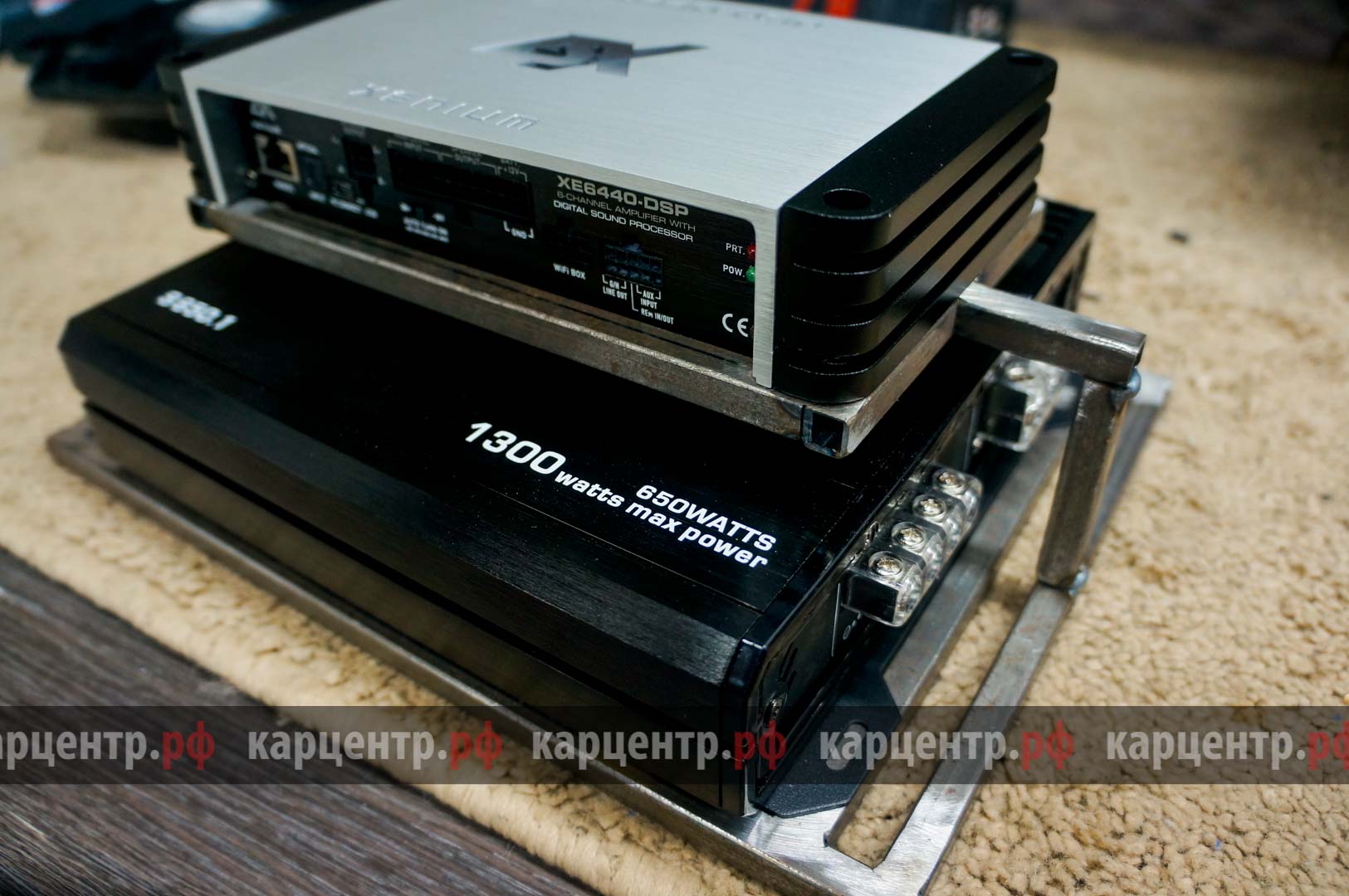 - Укладка проводки и подключение двух усилителей;