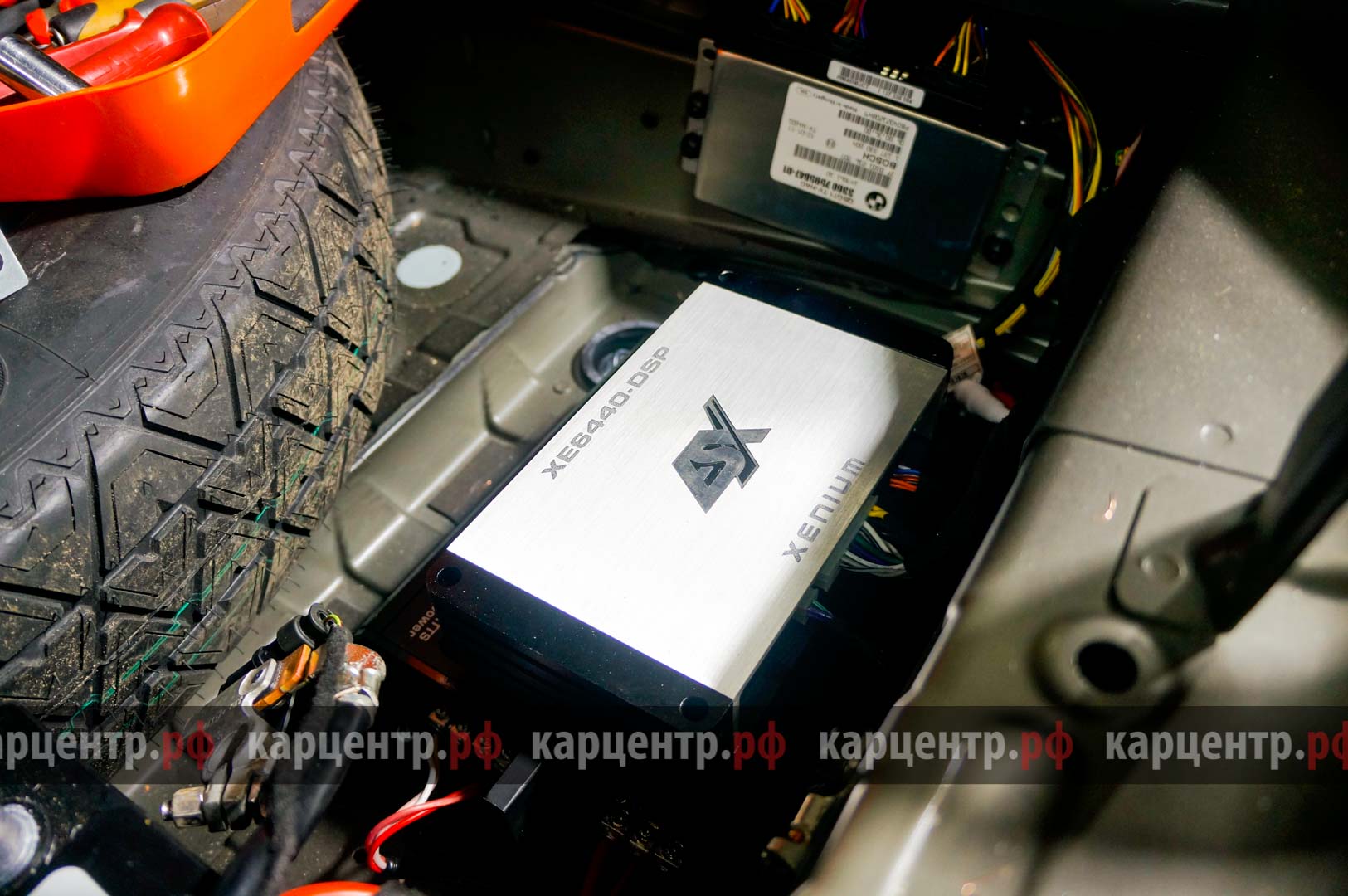 Установка и подключение усилителей в нише запасного колеса