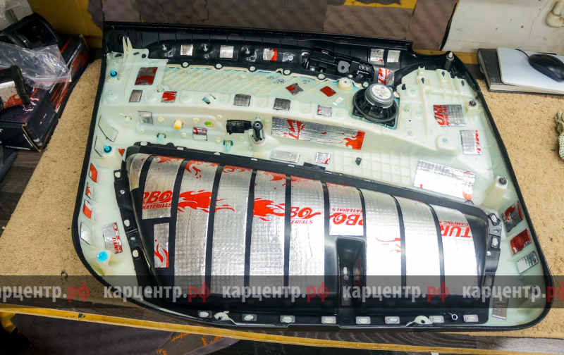 - обшивка двери, 1-ый слой вибродемпфер Turbo M2;