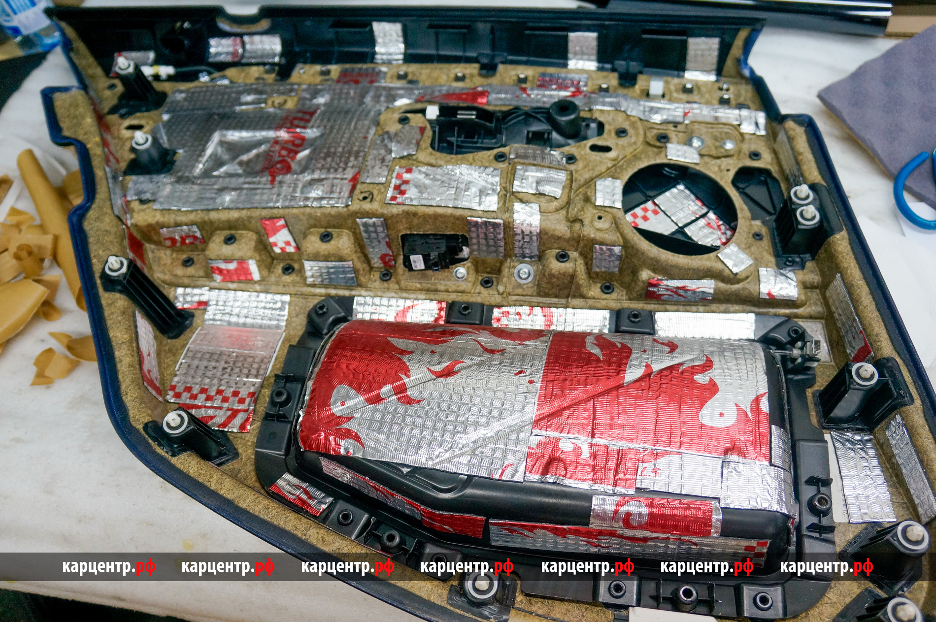 - обшивка двери, 1-ый слой вибродемпфер Turbo M2;